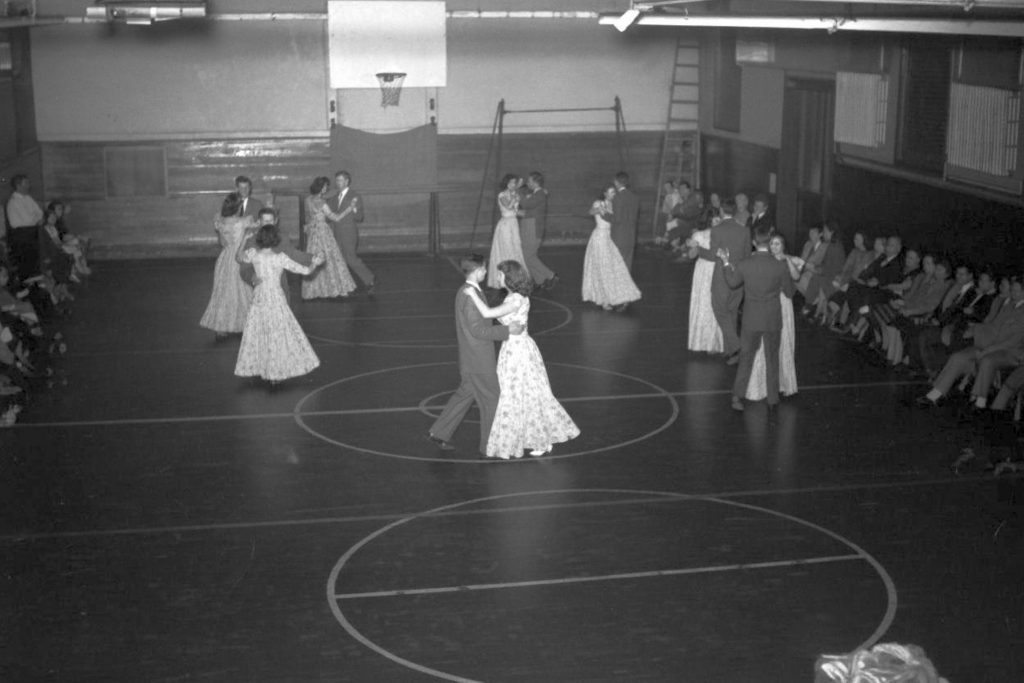 The winter ball was held in this gymnasium only months before the Old School burned in Aug-1947. During my high school years in the 1960s, we used our gym/auditorium as our ballroom for Proms and Balls. Chairs were set up on the stage so spectators could arrive at 10pm to see the crowning of the king and queen.