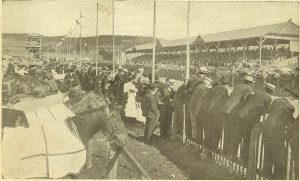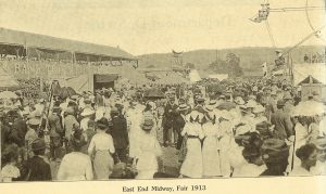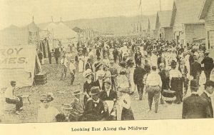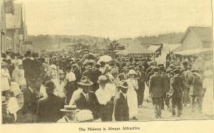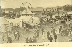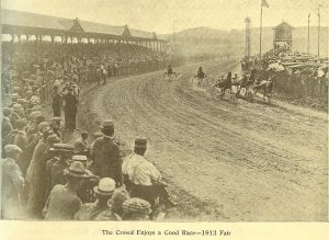 Crowds of 30,000 to 40,000 were common at the fair in the 1900’s. Admission to the fair was 25 cents with a reserved seat in the grandstand costing $1.50, and a box seat $3. There were five multi-heat horse races each day with purses of $300. The stables housed 200 horses. On Saturday J.B. Rice launched the races by riding in front of the grandstand in his surrey.