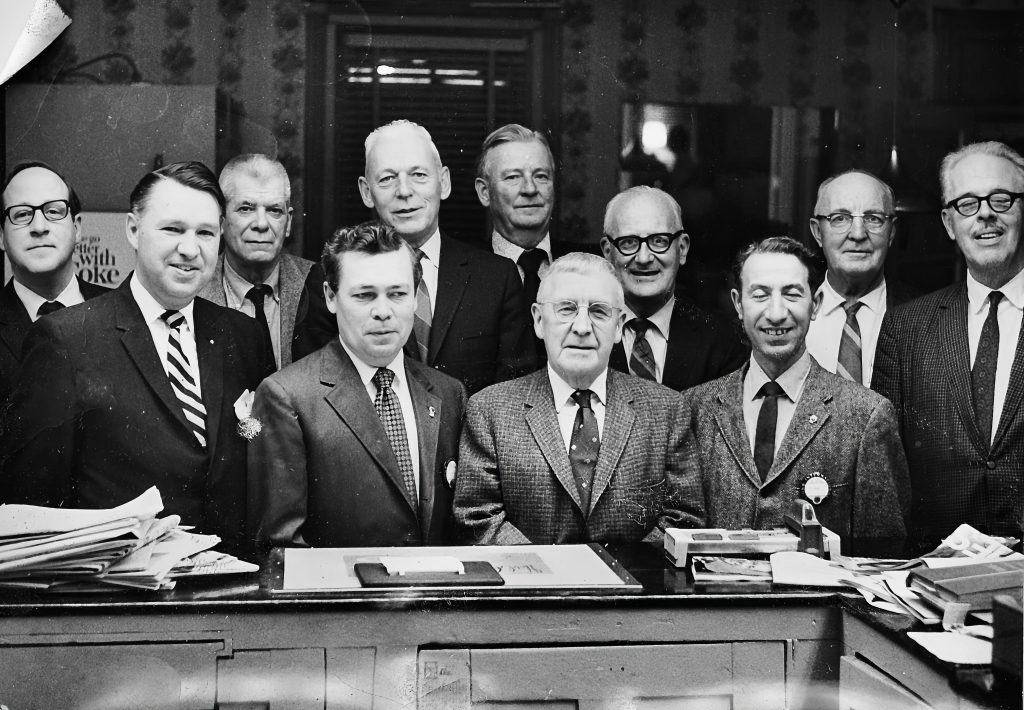 Back Row(l-to-r): Dr. Joe Pender, George Wilkie, Tom Dunn, Tom Dwyer, Walt Gann, Jerome Wright, Bob McWhorter,