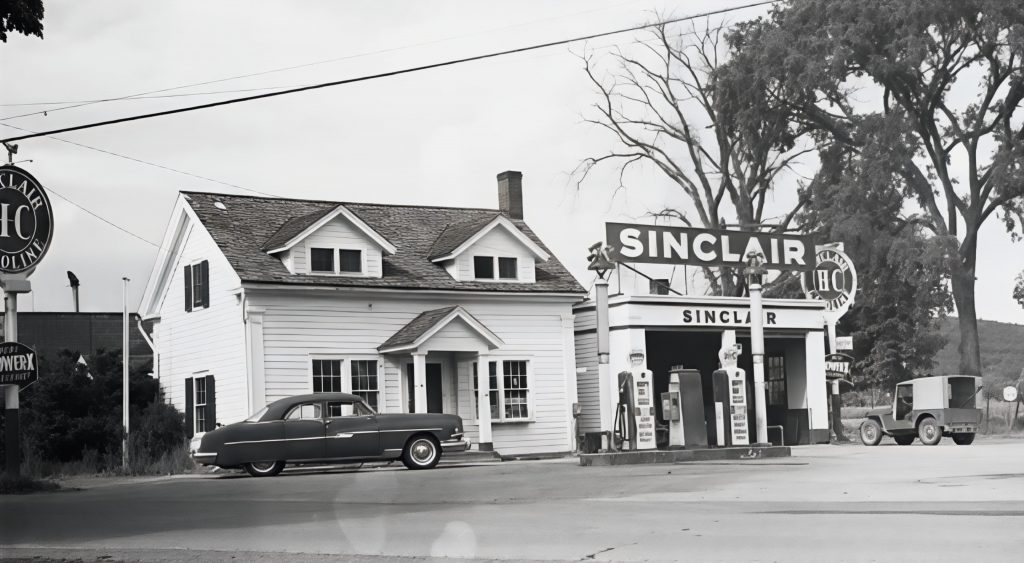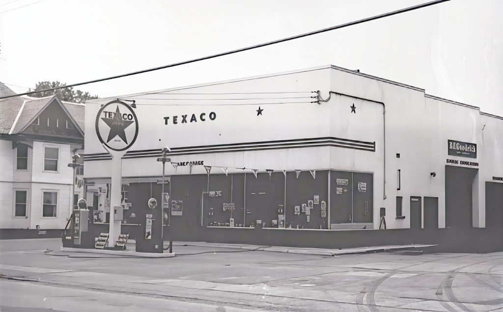 On Park Street there were nine, yep nine, service stations. Starting at the New School looking northward toward the Railroad Overpass you would see Pete Clark’s Mobil, George Brimmer’s Sinclair, George MacArthur’s Johnson Oil (Shell), Ken Randles’ Texaco, Chevron, Smith’s Sunoco, Howard Ramsden’s Esso, Ken Keys’ Gulf, and Charles DuRoss.