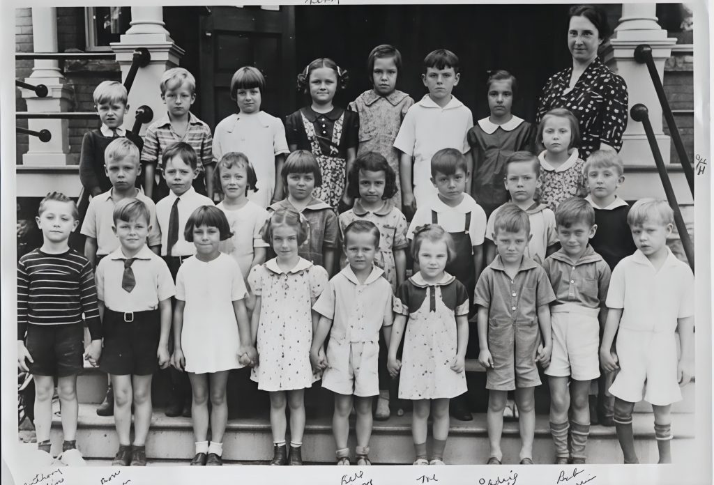 Back L to R: Rupert Jennings, Irving McLenithan, Joan Cottrell, Nancy K, Cahterine Weber, Eddie Mullen, Carmello ??, teacher, Rose Granger.