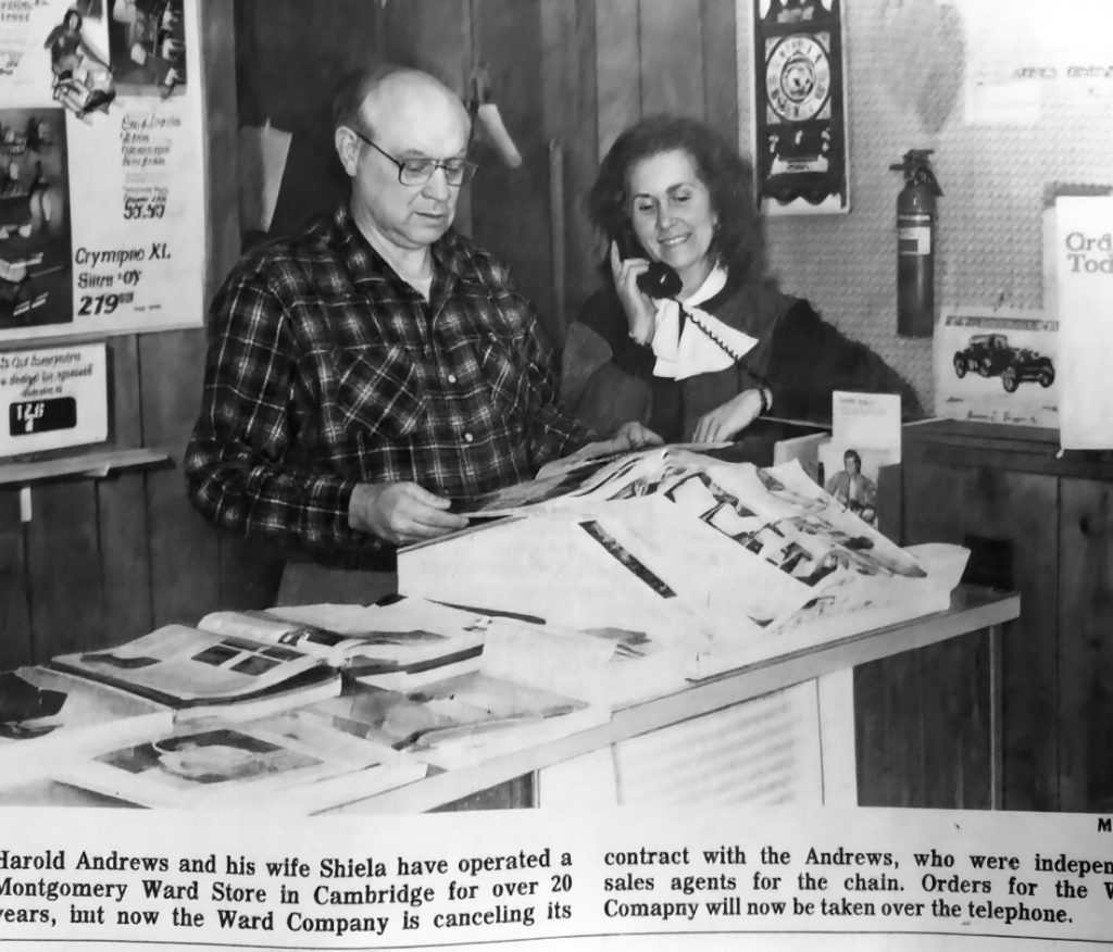 In the 1960s, companies mailed us 100+ page hard-cover catalogues in the Spring and Fall. We’d make our selections. Then we’d visit Harold and Shirley Andrews at their Montgomery Ward Catalog Store. We’d tell them what we wanted. They’d write it down and we’d go home. In about a week or two, they would call us to let us know we could stop in to pick up our order … and pay … with these pieces of green paper we called “cash” ;- )