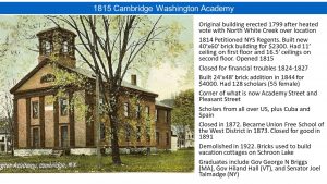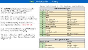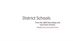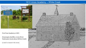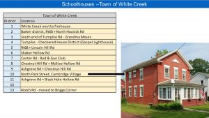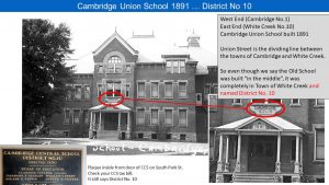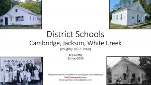 On 21-Jun-2023 I gave a presentation about the District schools in the towns of Cambridge, White Creek, and Jackson. I discussed why District schools were started, how they evolved into Union schools, and later centralized schools.
