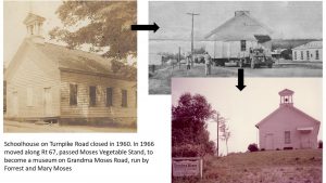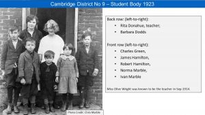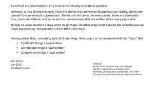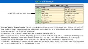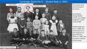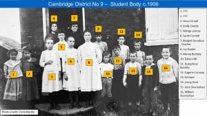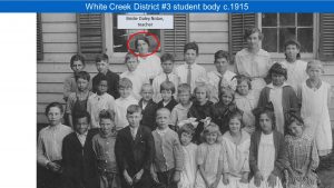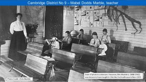 I assembled maps and photos of the one-room schoolhouses in the 3 towns. I also included several photos of student bodies.