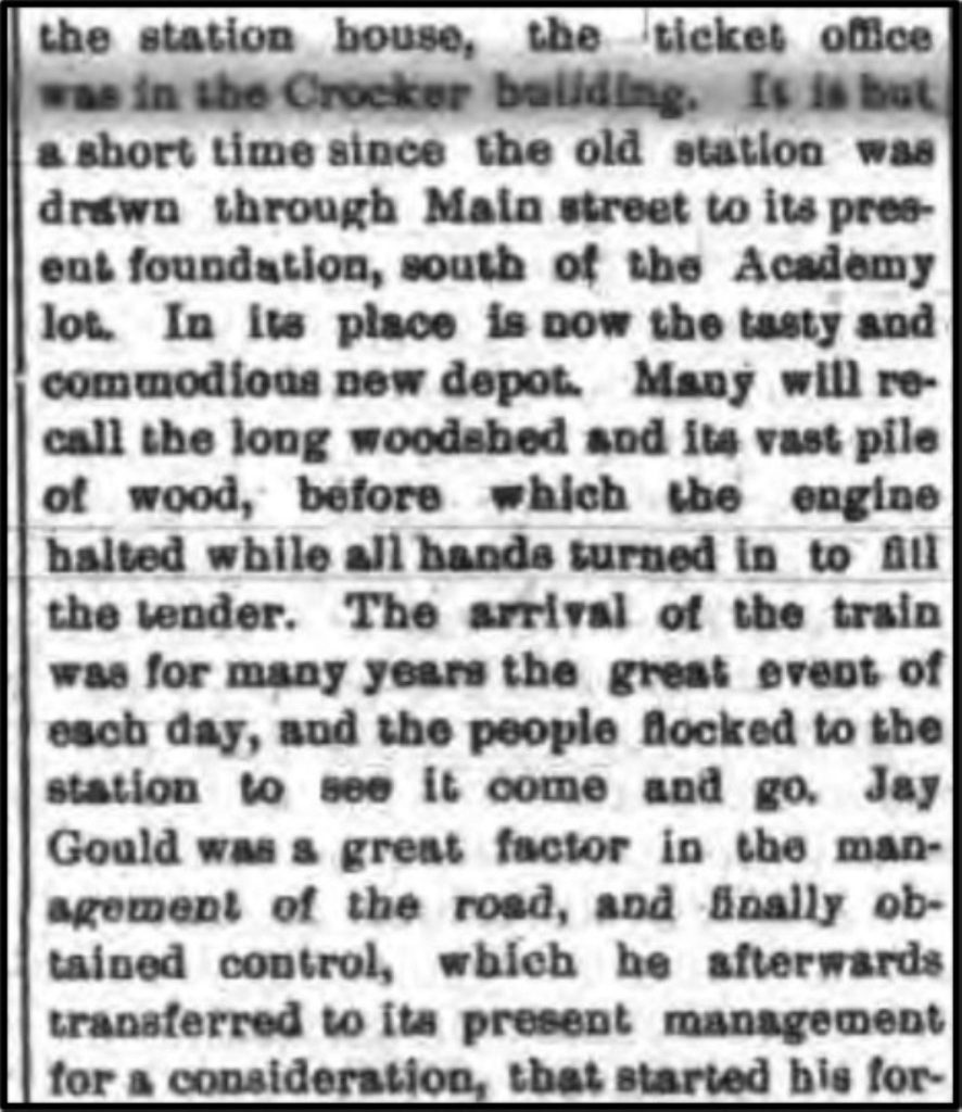 The article says that until the depot was completed, the ticket office was housed in the Crocker Building which is today the Cambridge Co-op.